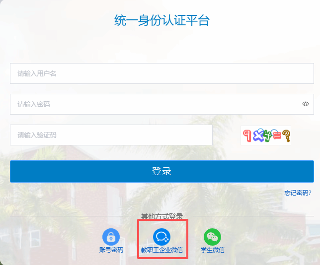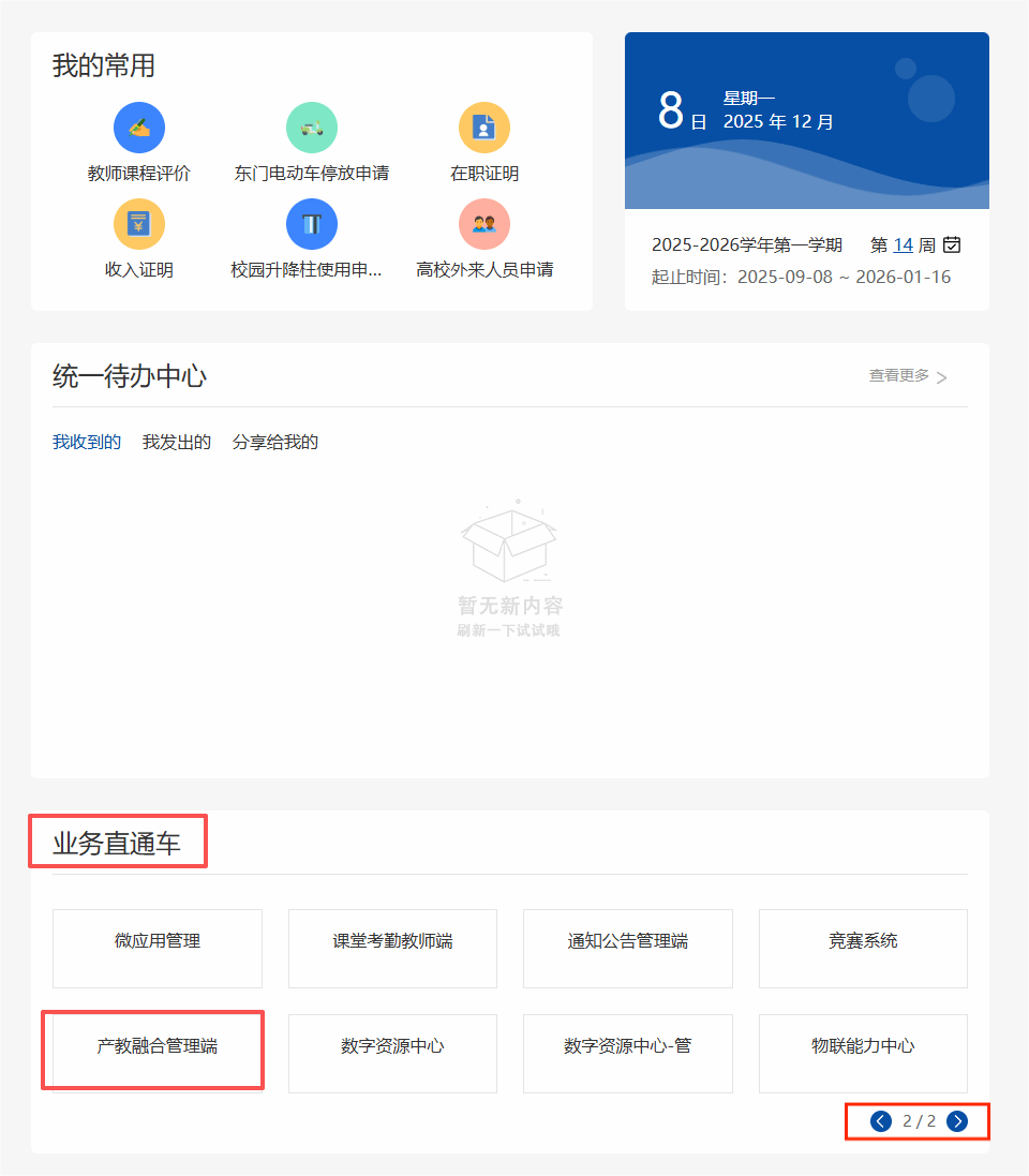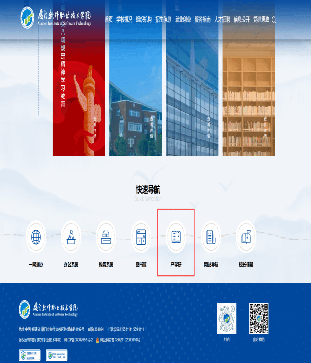 方式二:在浏览器地址栏输入:https://i.xmist.edu.cn/,系统将跳转至统一身份认证平台。建议使用企业微信扫码登录(如图2),在业务直通车第2页点击“产教融合管理端”(如图3)。
